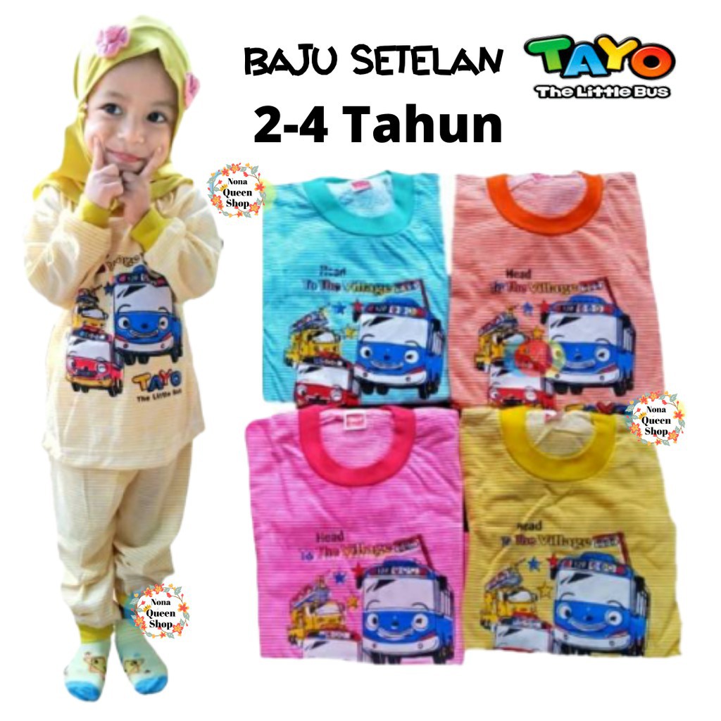 Harga 1 Setelan Baju Anak Perempuan (2-4 Tahun) Motif Bus Mobil Taya SALUR Baju Harian Anak Cewek