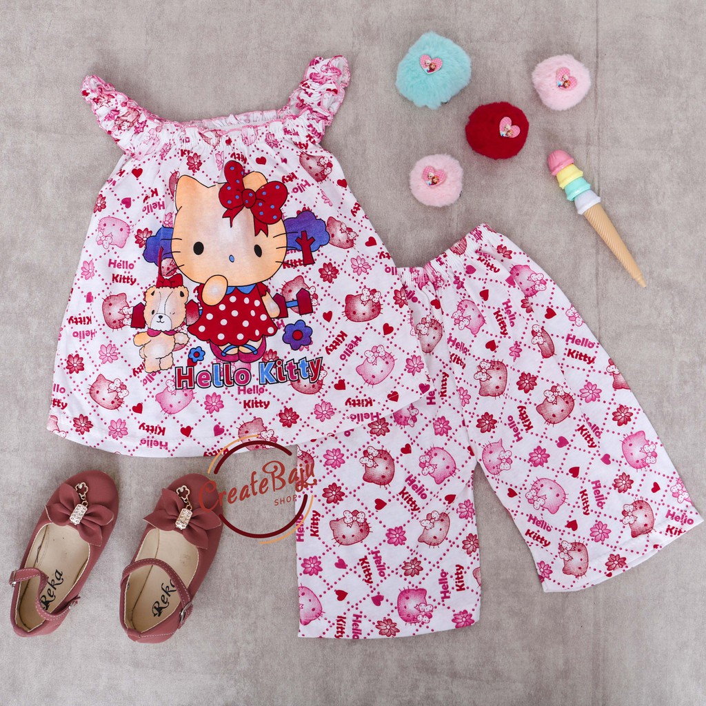 SETELAN ANAK CEWEK HELLO KITTY S M L XL BAJU ANAK PEREMPUAN LENGAN BUNTUNG TERMURAH FASHION