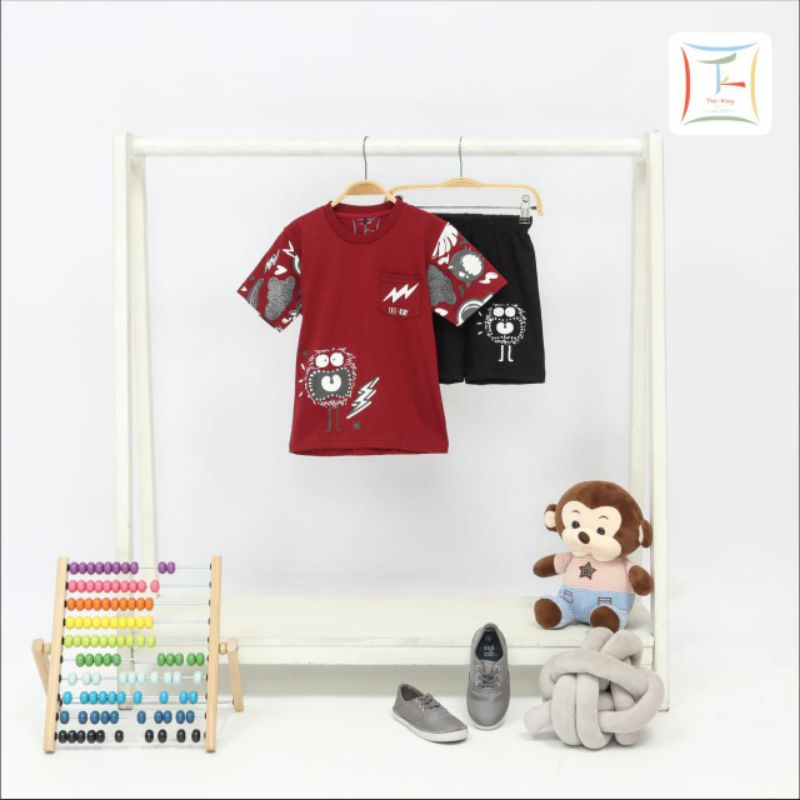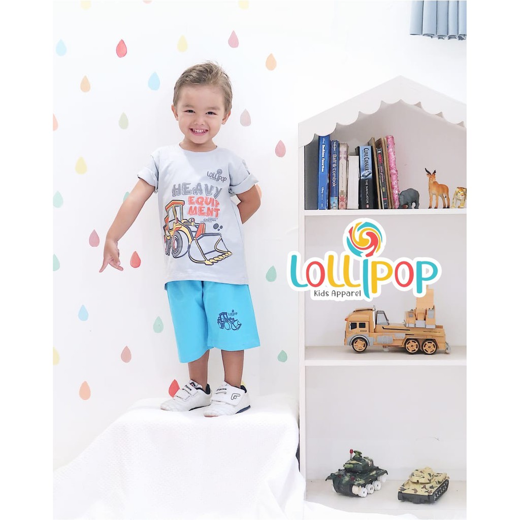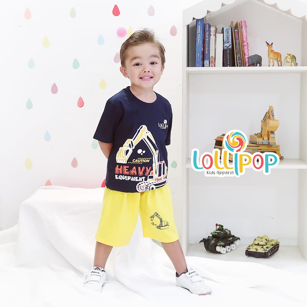 SETELAN ANAK LAKI LAKI LENGAN PENDEK BAJU ANAK COWOK USIA 1-10 TAHUN D&C KATUN 24S TEBAL MERAH FP ALAT BERAT BECKHOE EXCAVATOR CRANE ESKAVATOR