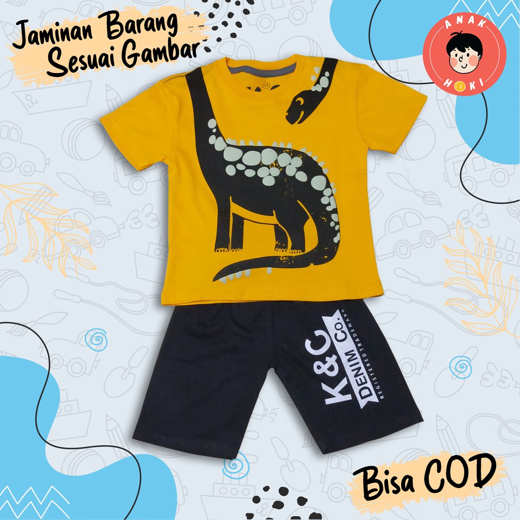 Baju Anak Hoki / Setelan Kaos Anak Laki-laki Lengan Pendek Motif Dino New Usia 1-10 tahun