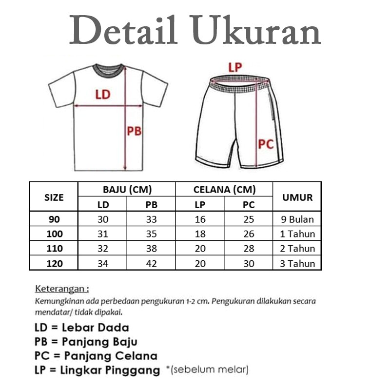Produk ini memiliki 4 Variasi Size yaitu : 90/S,100/M,110/L,120/XL,