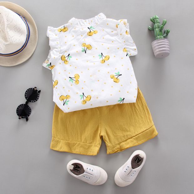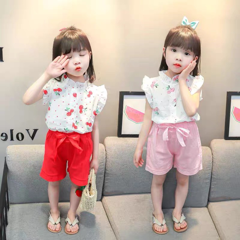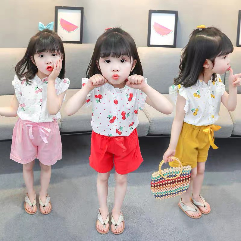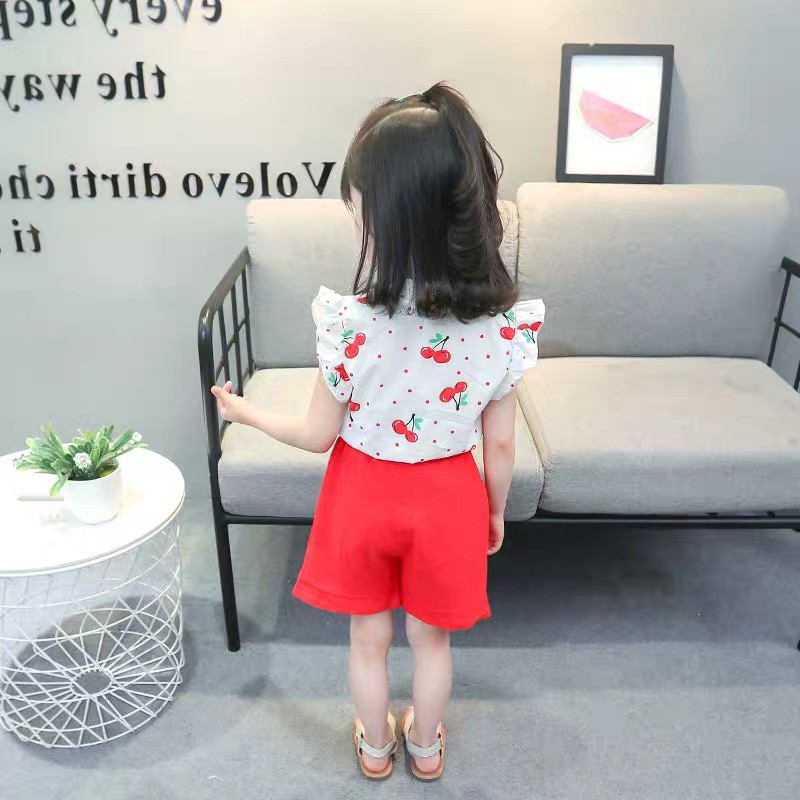 Harga Baju anak Perempuan / Setelan anak cewek lengan pendek 2IN1 Katun IMPORT Korean Style Umur 9bln-4th