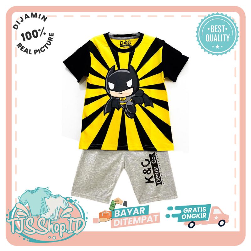 Kekurangan - Kekurangan membeli Baju Anak / Setelan Anak Laki Laki / Setelan Anak Lengan Pendek 1 - 10 Tahun Batm Kuning Celana Abu di Toko ini