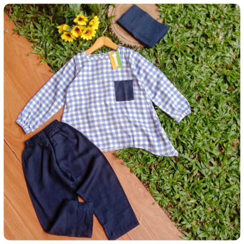 Baby Lona Setelan Baju Muslim Koko Kancing Depan Anak 02 Peci 1-3 Tahun