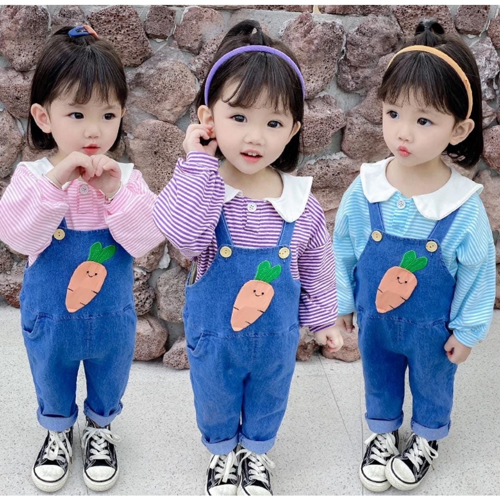 Onter Collection Setelan Jeans Anak Perempuan/Setelan Overal Carrot In Blaster/Baju Anak Import/Monyetan Levis Anak Cewek