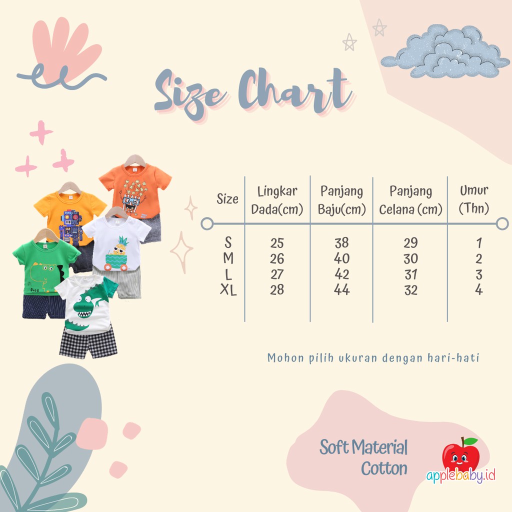 Produk ini memiliki 4 Variasi UKURAN yaitu : S (1 Tahun),M (2 Tahun),L (3 Tahun),XL (4 Tahun),