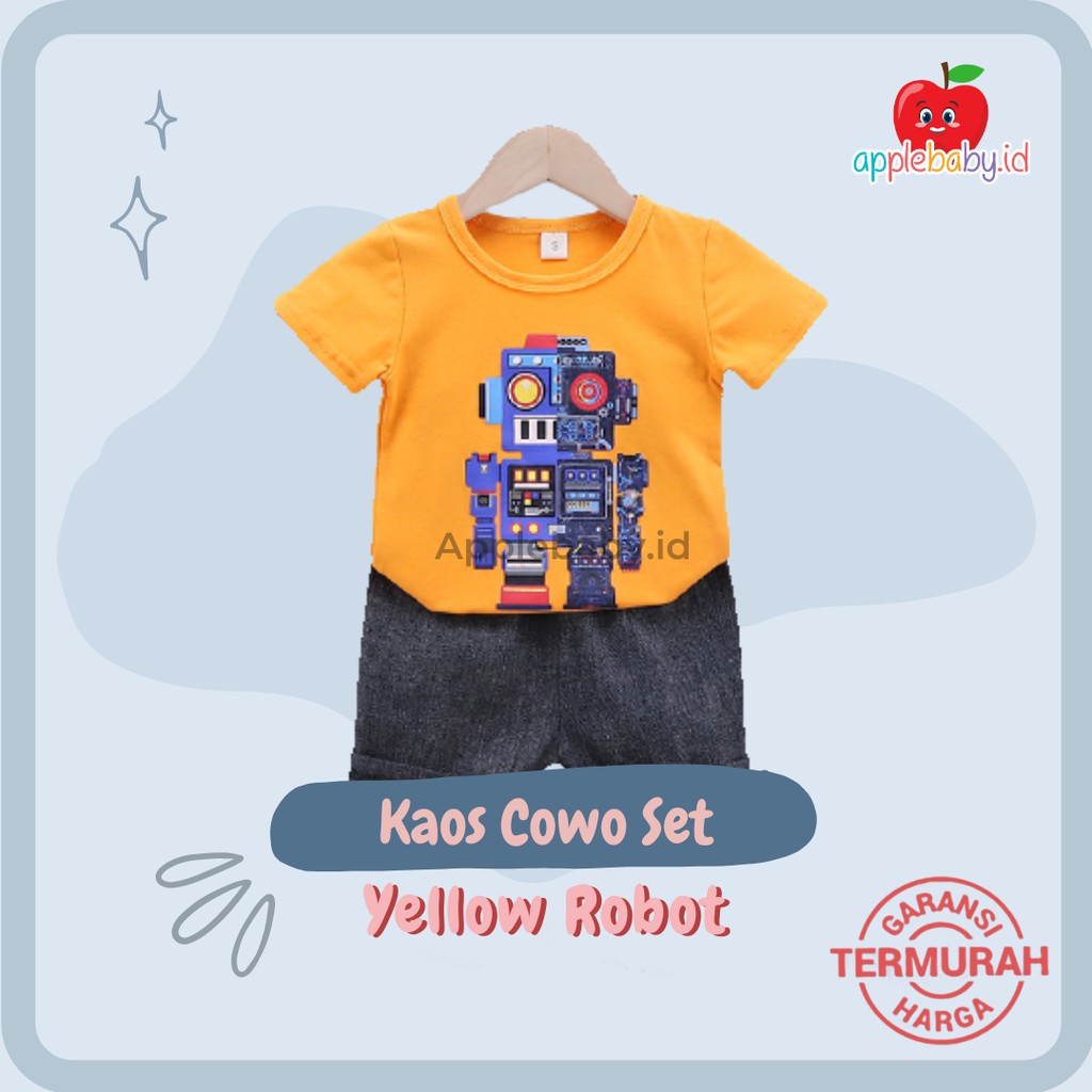 Baju Anak / Setelan Anak Laki Laki / Setelan Anak Lengan Pendek 1 - 10 Tahun Batm Kuning Celana Abu