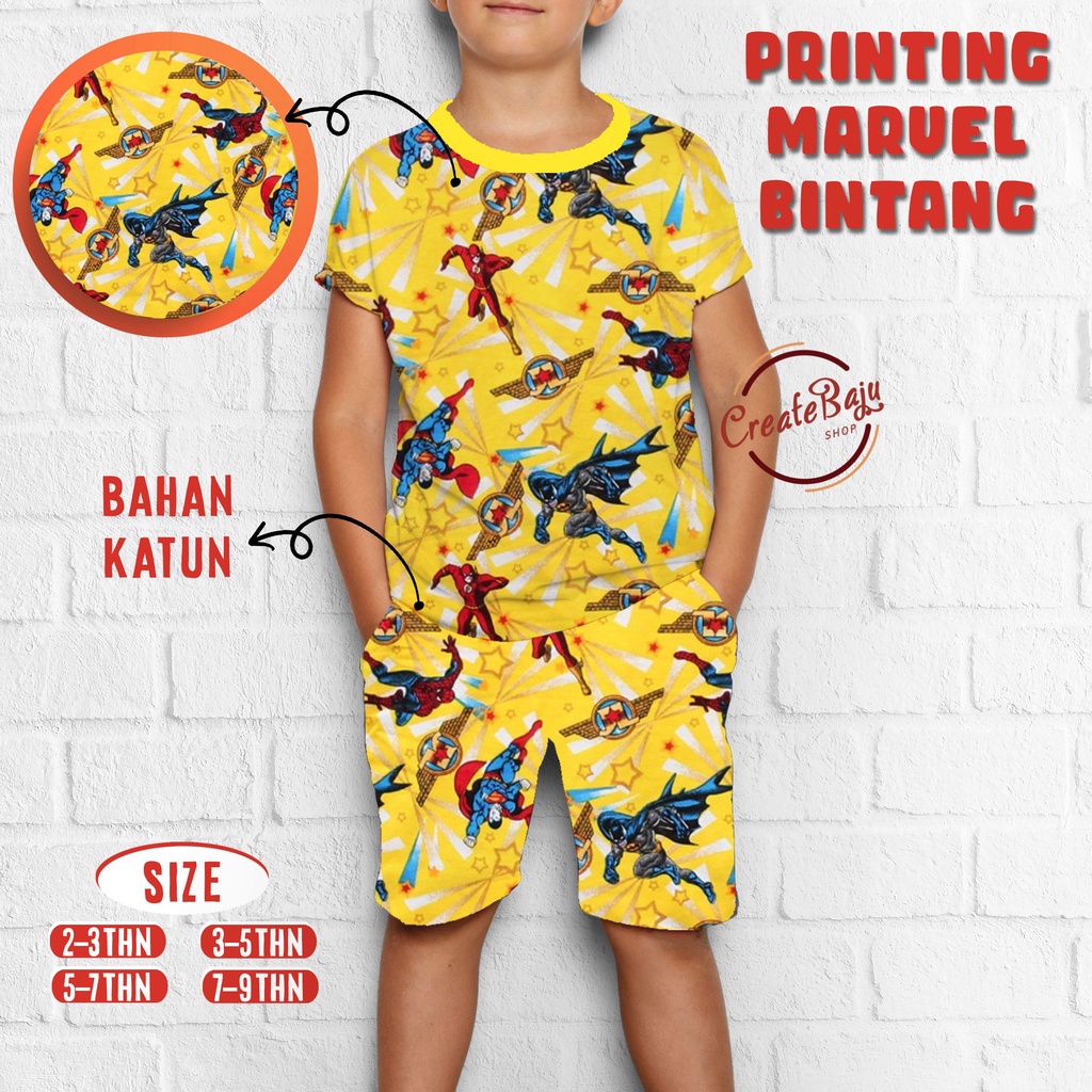 SETELAN ANAK LAKI-LAKI HAYAMI 2-7 TAHUN PRINTING MARVEL BINTANG BAJU ANAK LAKI MURAH LENGAN PENDEK