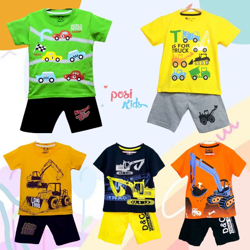 Harga Setelan Anak Laki Laki / Baju Anak Laki Laki Karakter Mobil Traktor Umur 1-10 Tahun