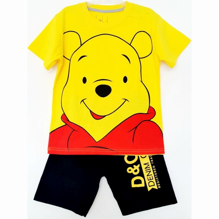 Harga SETELAN ANAK LAKI LAKI LENGAN PENDEK BAJU ANAK COWOK USIA 1-10 TAHUN D&C KATUN 24S TEBAL KUNING WINNIE THE POOH