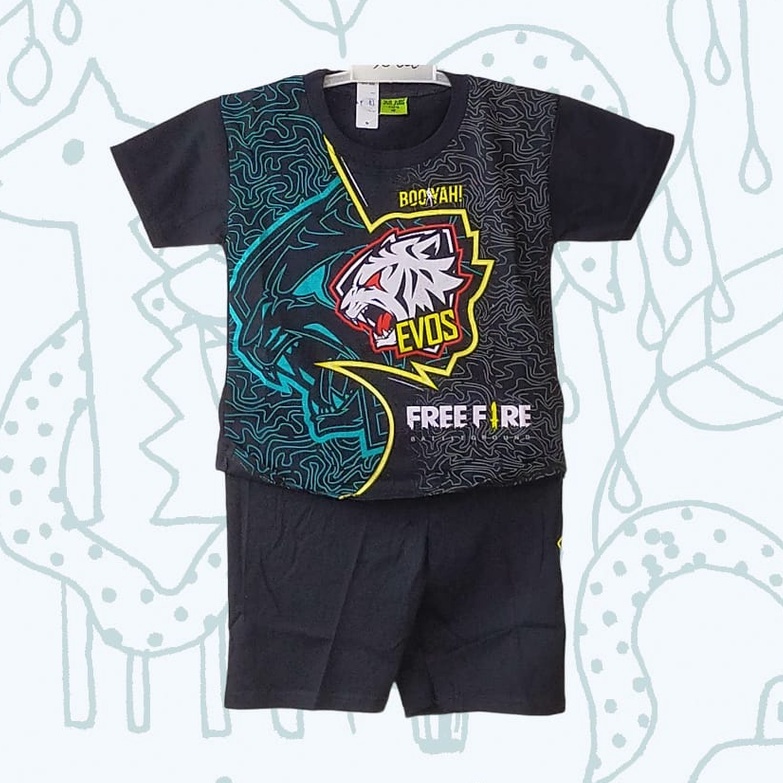 Setelan Anak Cowok Bergambar Karakter FF/ Setelan Anak Lengan Pendek Terbaru / Baju Anak Cowok