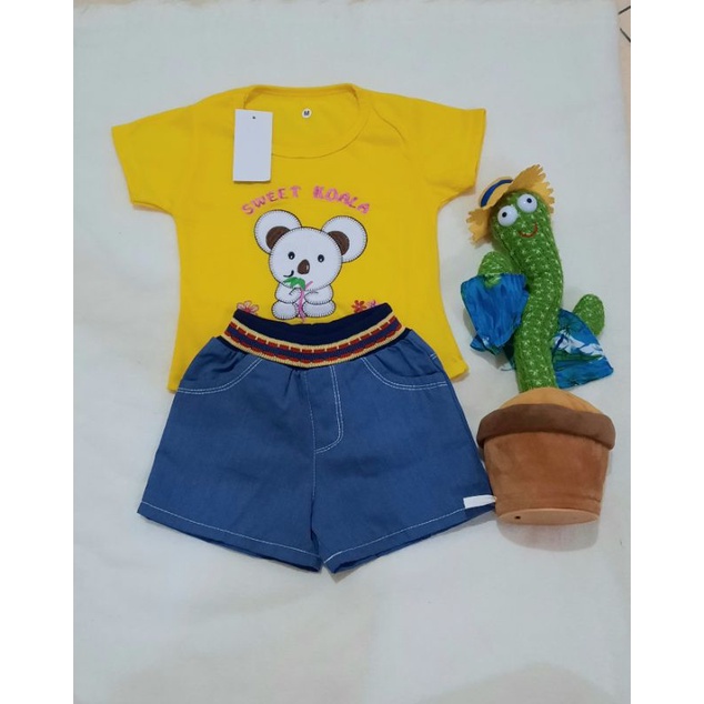 Setelan Anak Laki-Laki Hayami 2-7 Thn Bumble Bee Bahan Katun Lengan Pendek