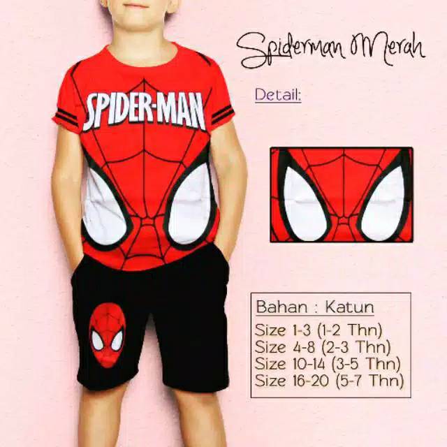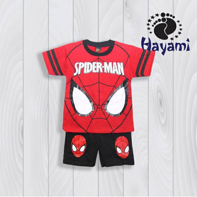 Harga Setelan anak spiderman pendek hayami murah / kaos baju anak spiderman
