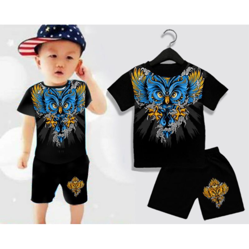 SETELAN BAJU ANAK LAKI LAKI BURUNG HANTU/ SETELAN KAOS ANAK COWO MOTIF OWL BATIK