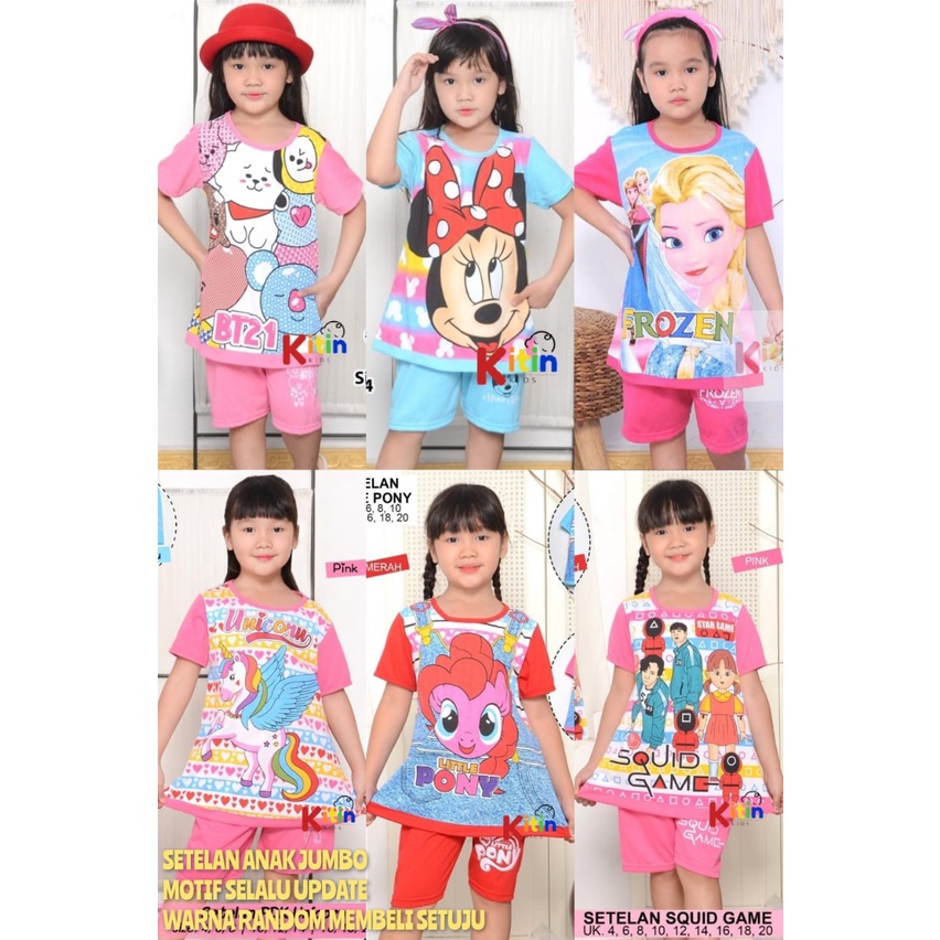 Harga SETELAN BAJU MAIN DAN HARIAN ANAK CEWEK/PEREMPUAN JUMBO 3-12 TAHUN MOTIF BTS/BT21/BANGTAN BOY/FROZEN