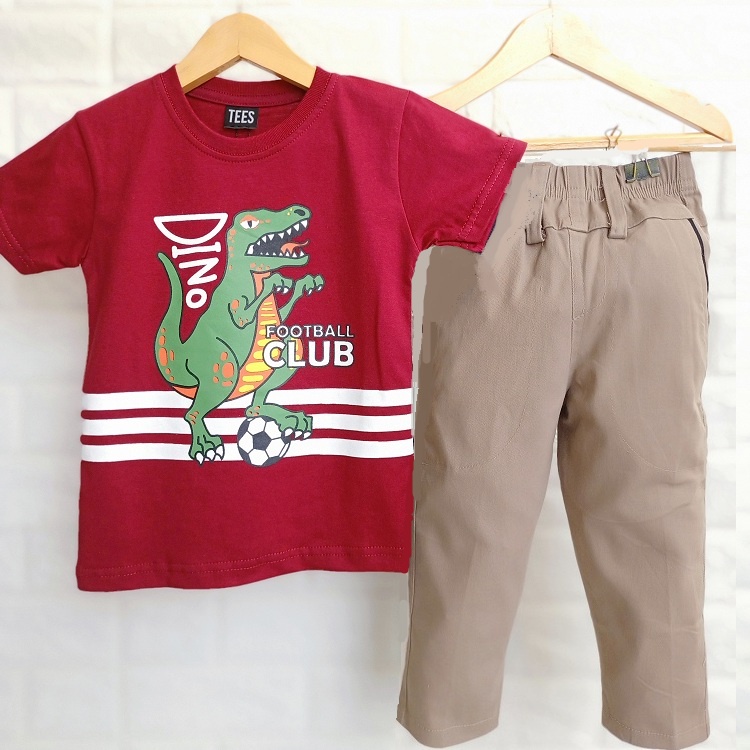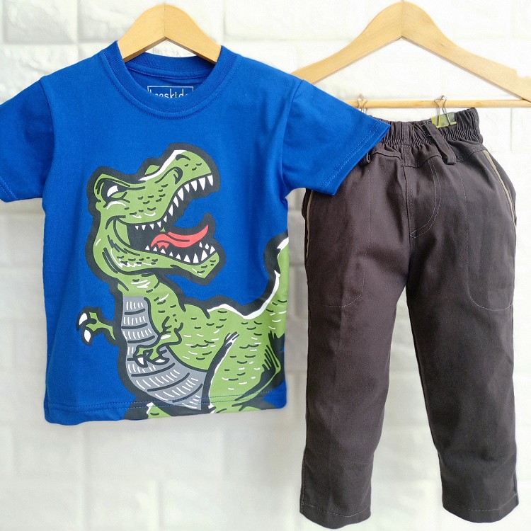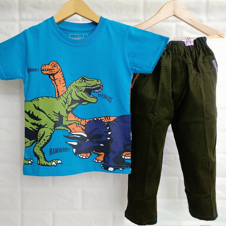 Harga SETELAN KAOS ANAK LAKI DINO CELANA PANJANG KATUN 1-9 TAHUN BAJU ANAK COWOK DINO CELANA K.PJ