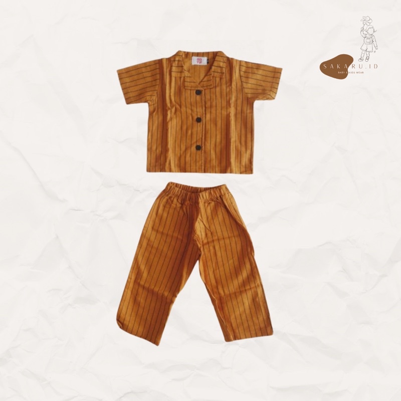 SAKARU - EUNJI SET - UNISEX BABY KIDS GIRL BOY BAJU ANAK SETELAN STRIPE GARIS MUSTARD STRIPES - GOYU