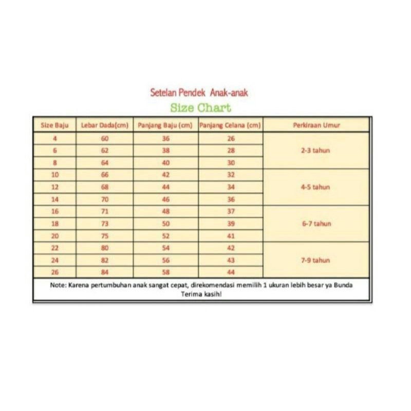 Produk ini memiliki 3 Variasi Ukuran yaitu : 2-3 thn,4-5 thn,6-7 thn,