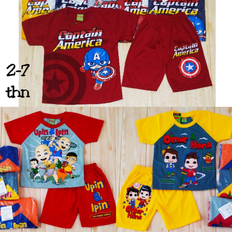 Harga SETELAN UPIN IPIN OMAR HANA 2-7 THN - BAJU ANAK CAPTAIN AMERICA