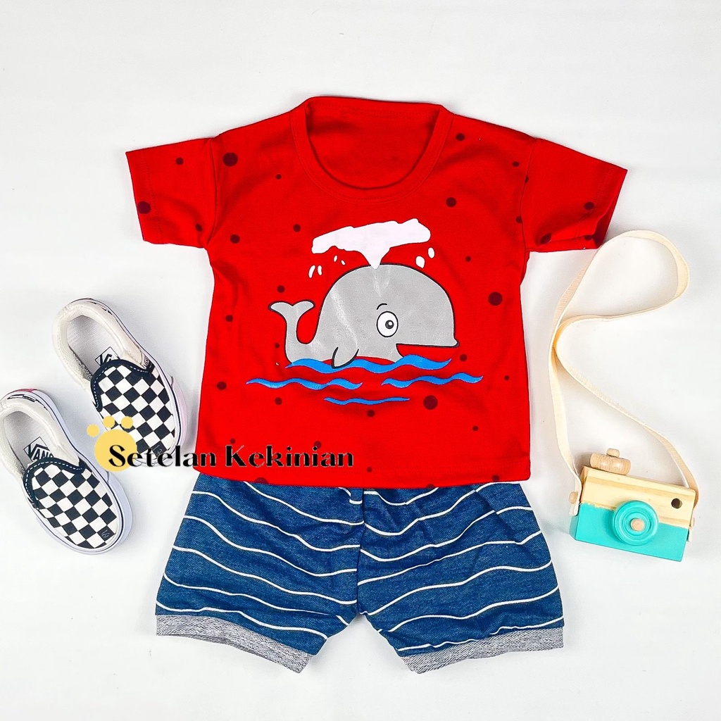 Harga [SK] Setelan Anak Laki Laki 3bln-12bln Set Baby Boy Animal Anak Cowok Baju Anak Paus Lucu Newborn