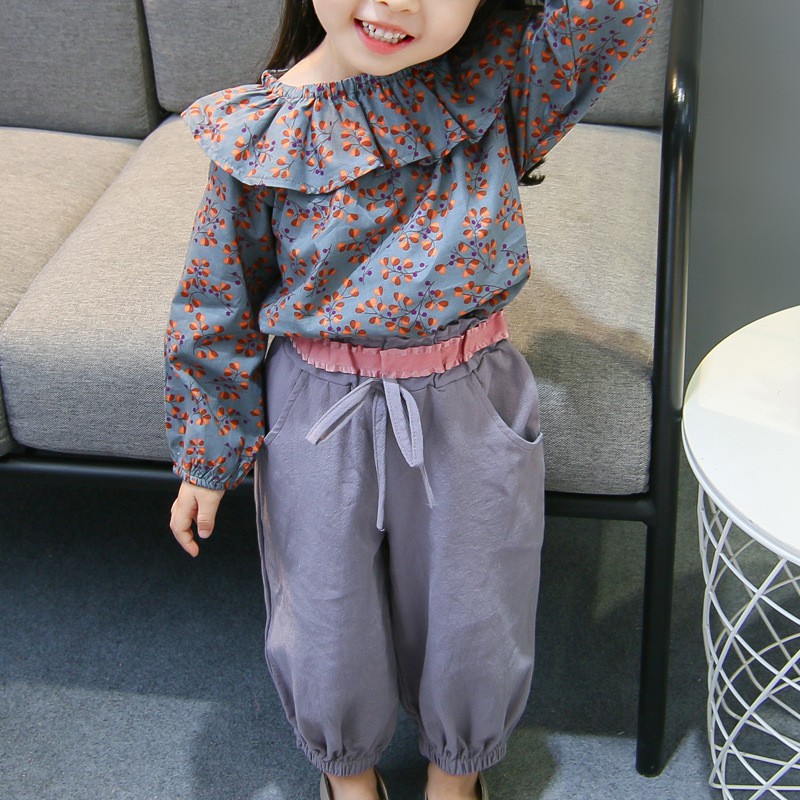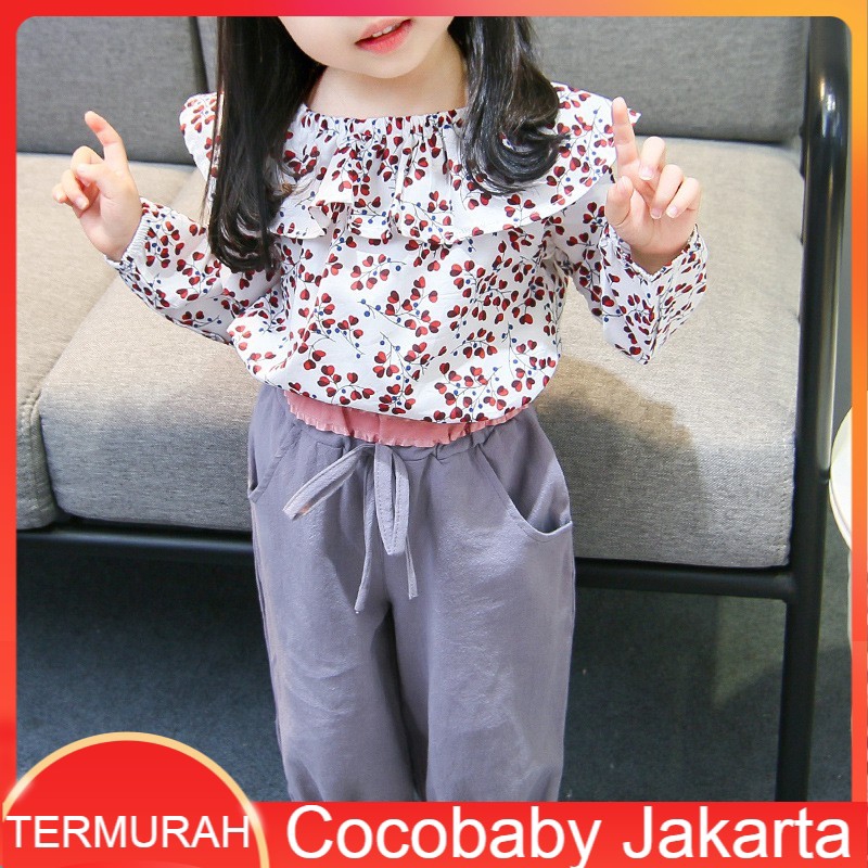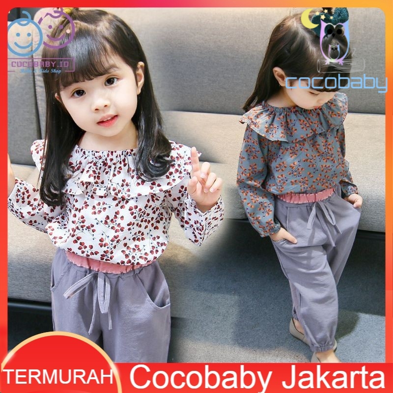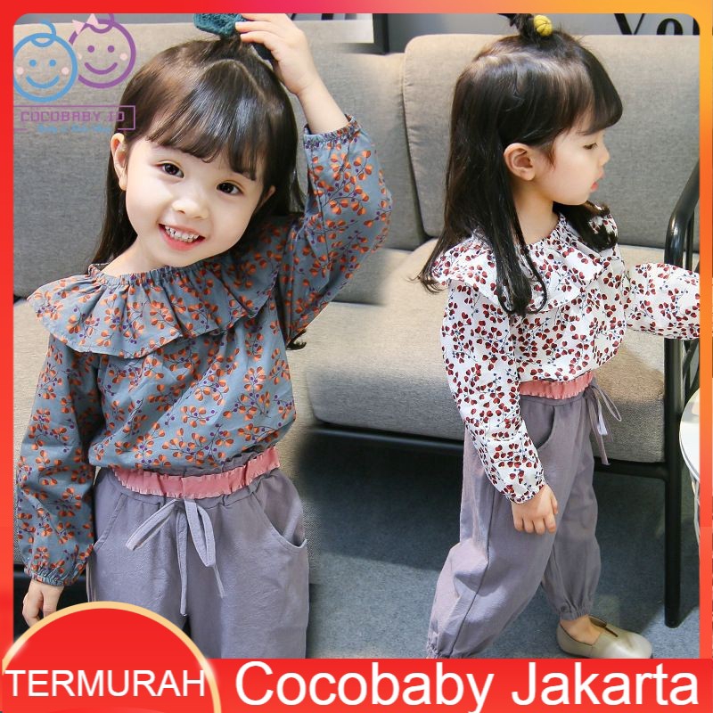 Harga 1 Set 2pcs Kids Girl Floral Print Long Sleeve Top And Trousers Costume Set setelan anak