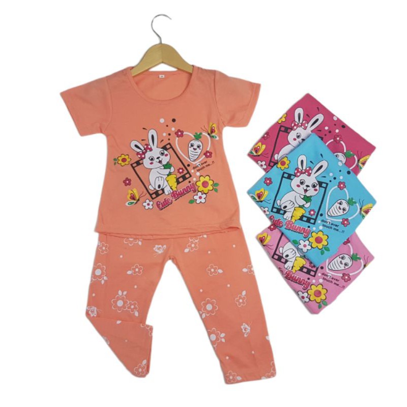 SETELAN SIKUNING PAKAIAN BAJU ANAK PEREMPUAN 2-8 TAHUN MOTIF RABBIT WORTEL CELANA PANJANG