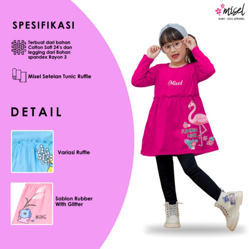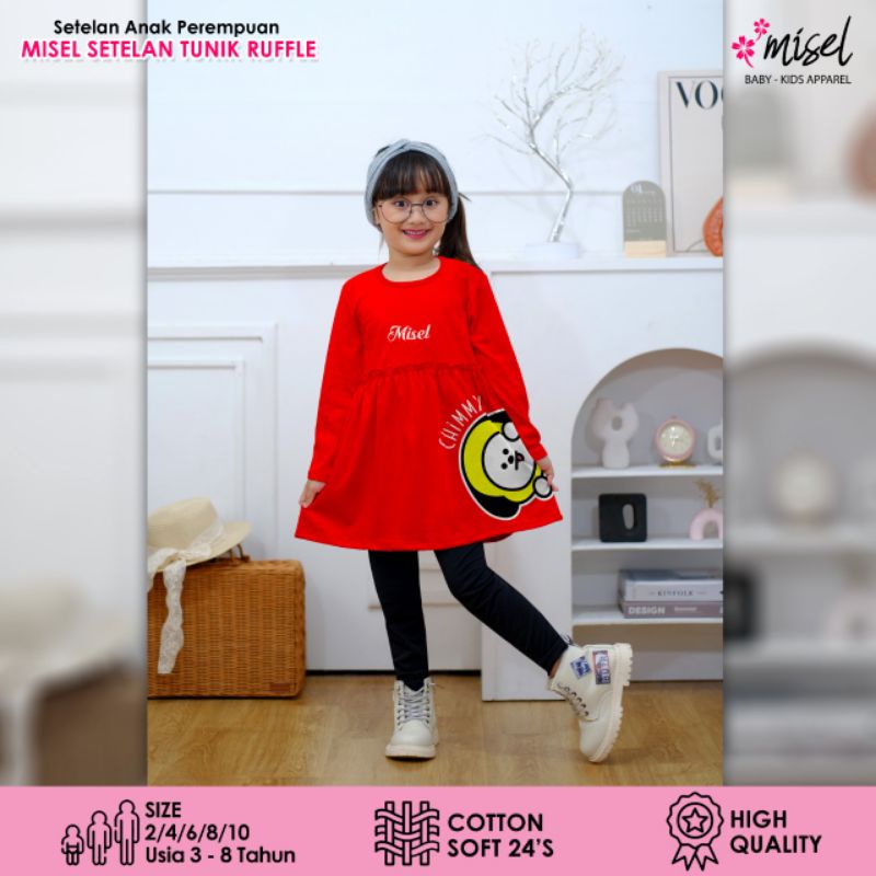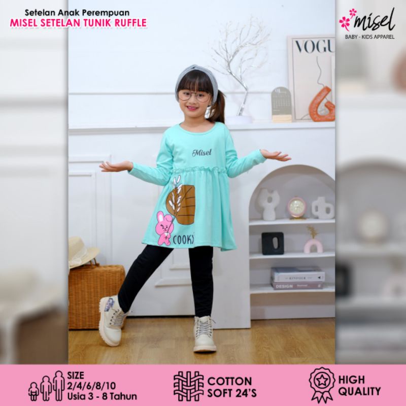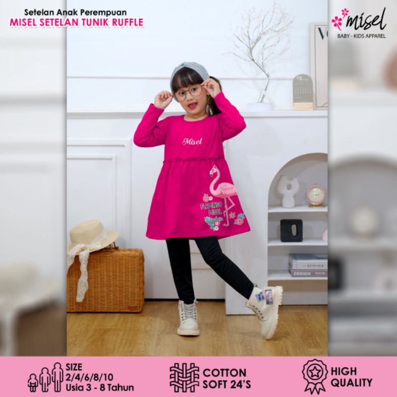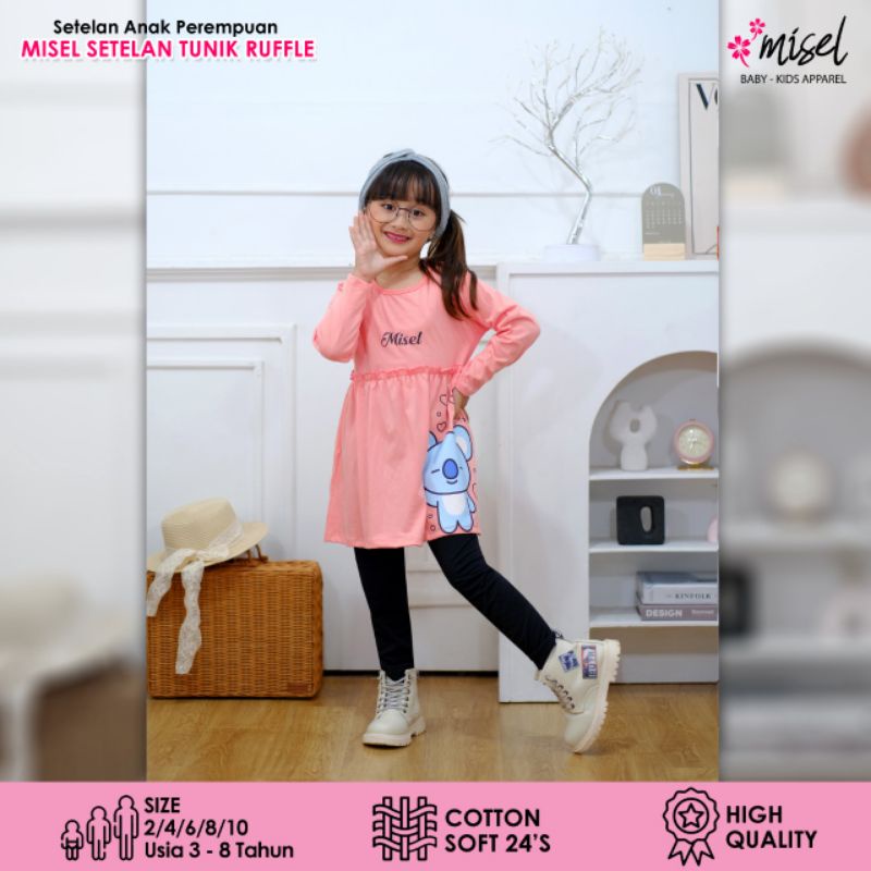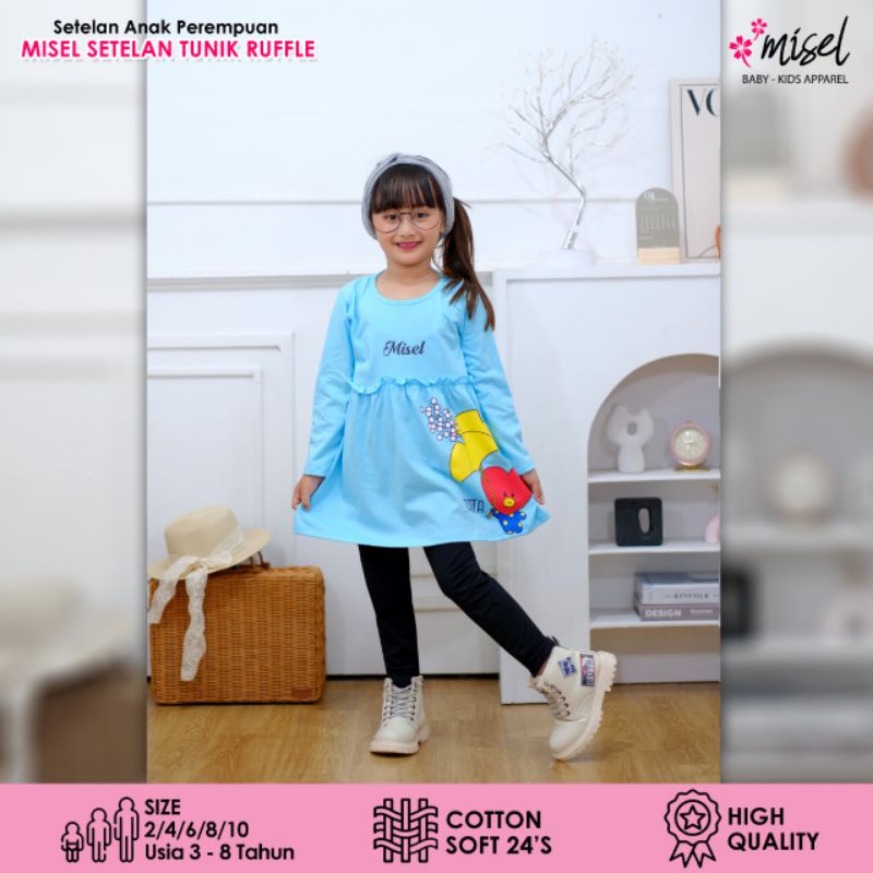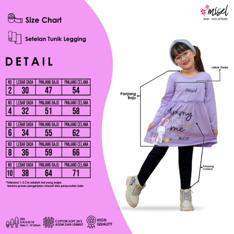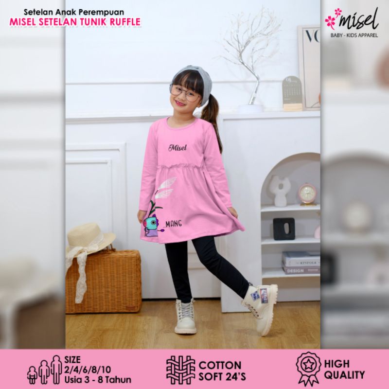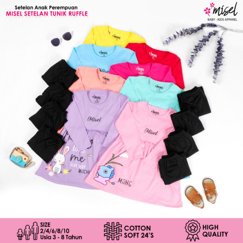 (2-8Tahun) Set Setelan Baju Dress Tunik Kaos Legging Anak Perempuan Cewek Lengan Panjang Misel Long Tunik 2 3 4 5 6 7 8 Tahun
