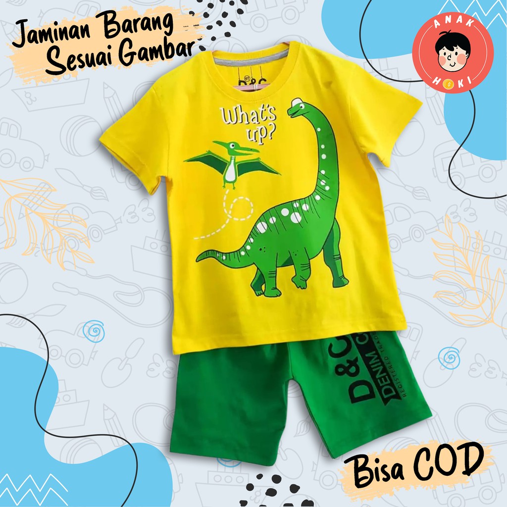 Kelebihan - Kelebihan membeli Baju Anak Hoki / Setelan Kaos Anak Laki-laki Lengan Pendek Motif Dino WU Usia 1-10 tahun di Toko ini