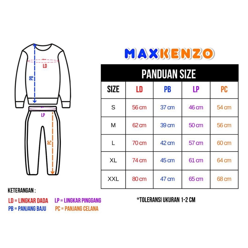 Produk ini memiliki 5 Variasi Size yaitu : Size S (1 - 2 th),Size M (3 - 4 th),Size L (5 - 6 th),Size XL (6 - 7 th),Size XXL (7 - 8 th),