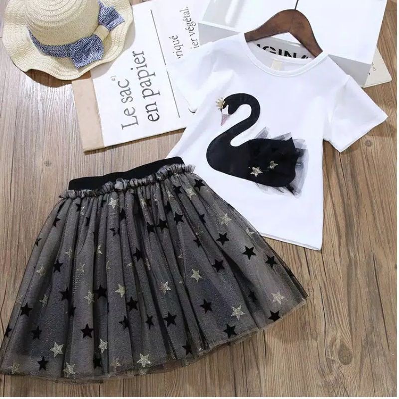SETELAN FLAMINGGO IMPORT, SETELAN ANGSA TUTU ANAK IMPOR, BAJU ANAK CANTIK ROK TUT