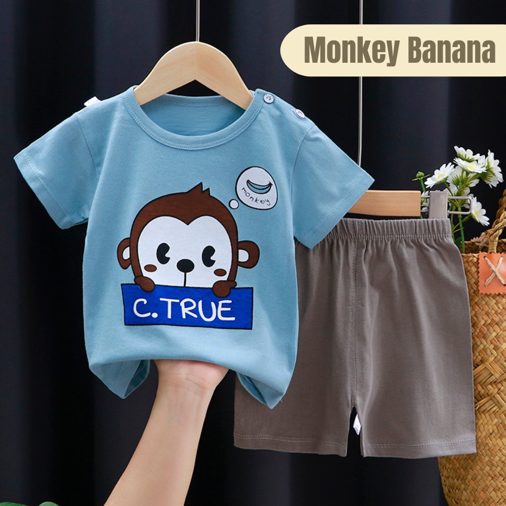 Setelan Baju Anak Laki-laki Usia 3 bulan - 3 tahun JK Motif Hello Panda New