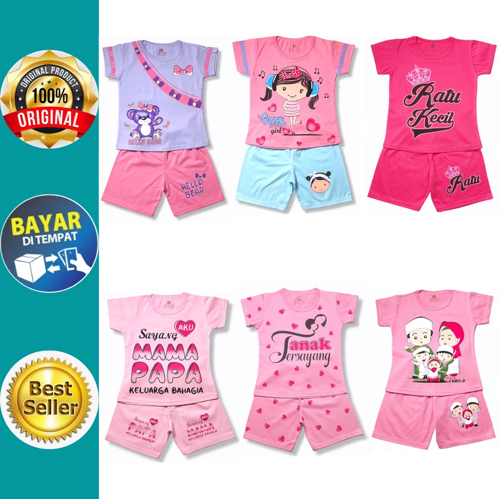 Harga Set Baju Setelan Anak Perempuan Stelan Fashion Tidur Kaos Anak Cewek Celana Pendek Murah Usia 1 2 3 4 5 6 7 Tahun Terbaru