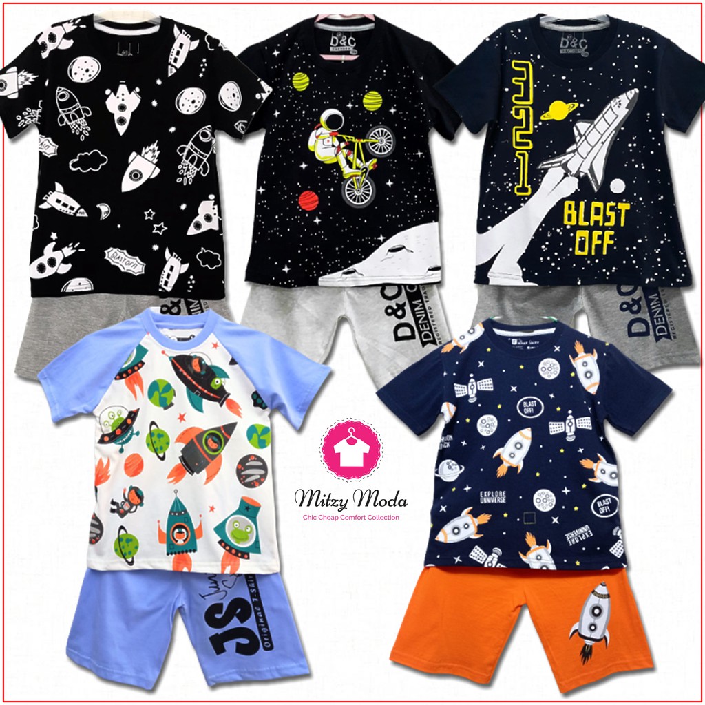 Setelan Murah Anak Astronot - Planet Luar Angkasa | Baju Anak Laki Laki | Kaos Karakter Anak Laki Murah