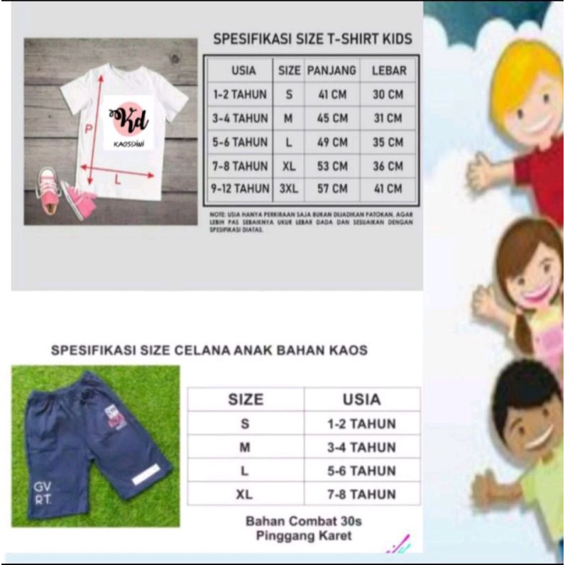 Baju Kaos Setelan Anak Perempuan Stelan Anak Cewek Usia 3 - 15 Tahun