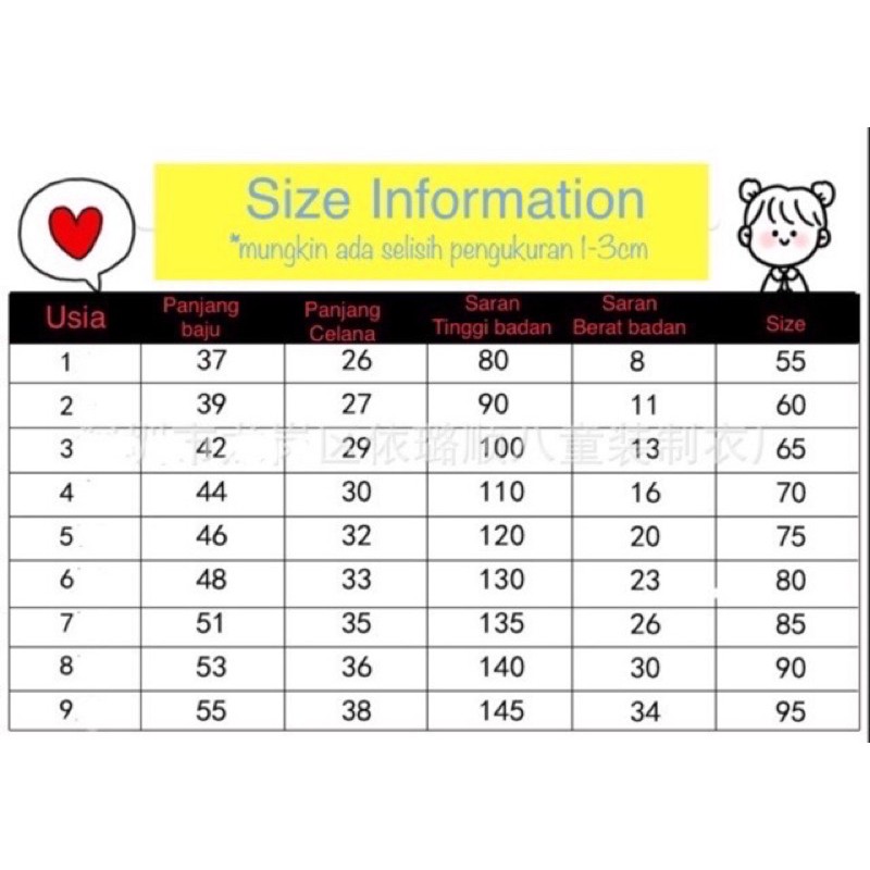 Produk ini memiliki 9 Variasi Ukuran yaitu : 55 (1th),60 (2th),65 (3th),70 (4th),75 (5th),80 (6th),85 (7th),90 (8th),95 (9th),