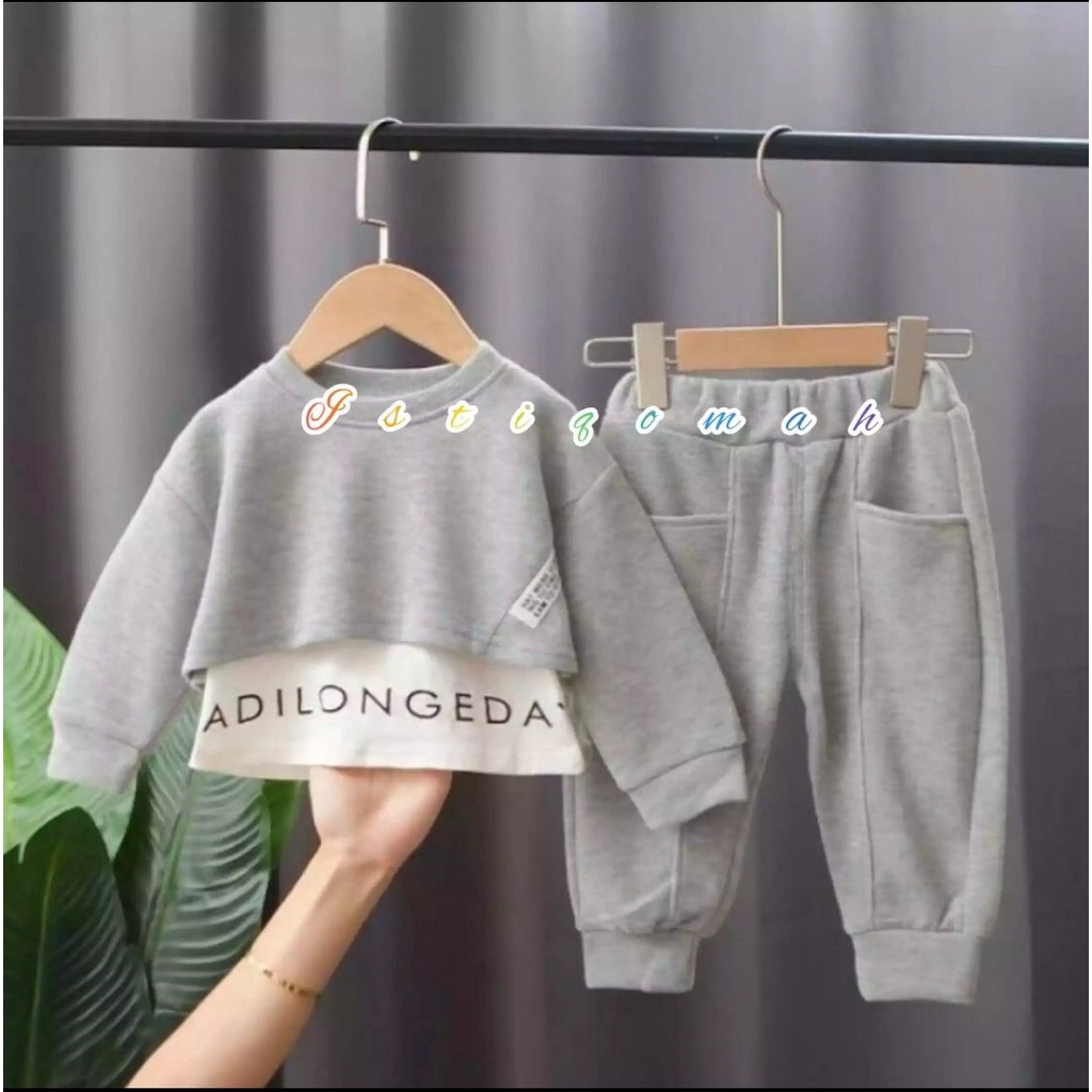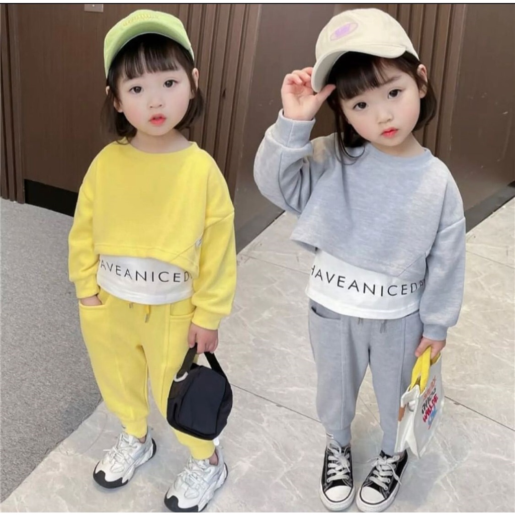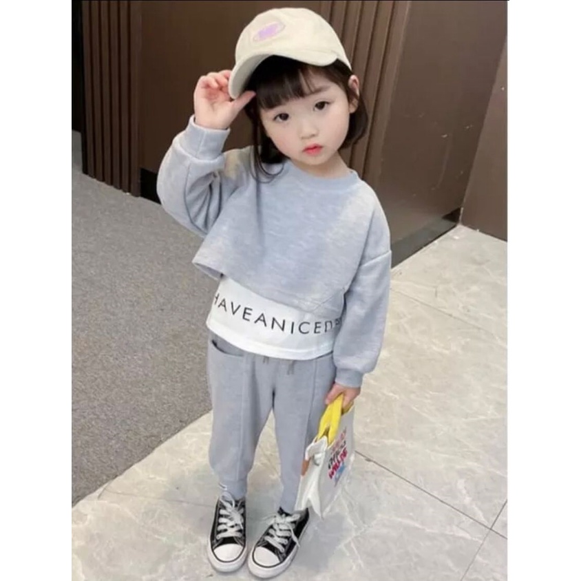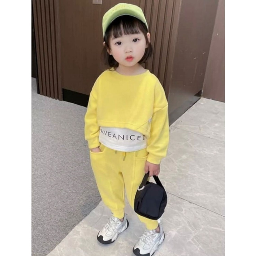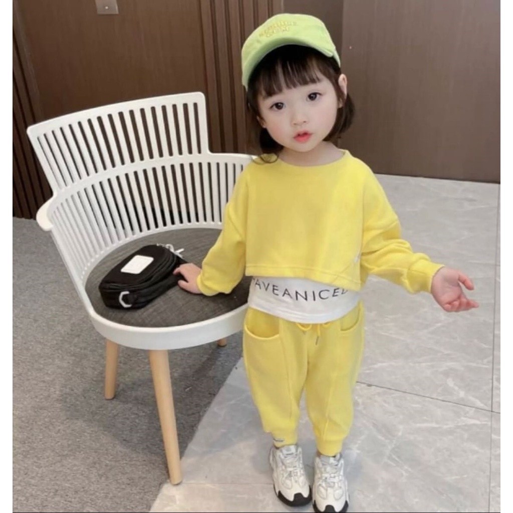 Harga Setelan anak perempuan 3 IN 1 MODEL CROP umur Bayi 1 sampai 6 Tahun LENGAN PANJANG CELANA JOGER Korean Style yang Kasual - Oneset Pakaian Ank Cewe - Satu Set Training olahraga anak anak - Satu Setel baju anak cewek