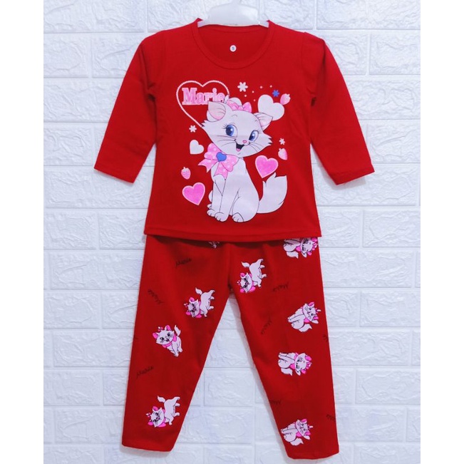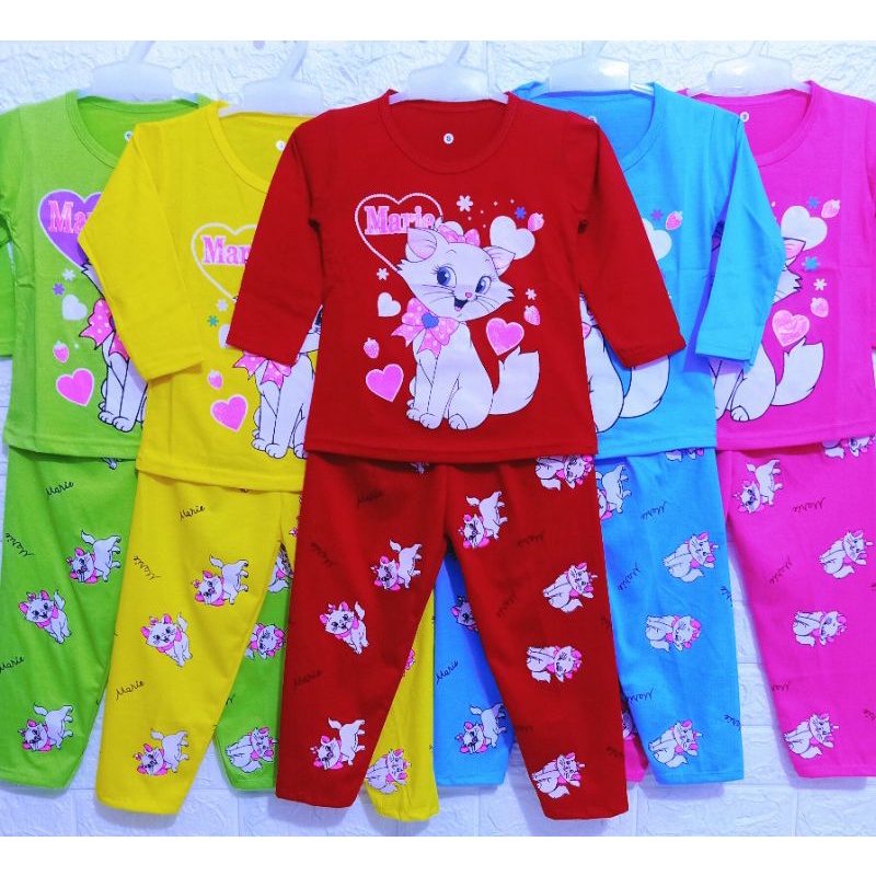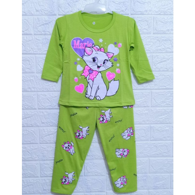 Harga setelan anak perempuan lengan panjang gambar marie cat /setelan anak perempuan murah 2/9tahun