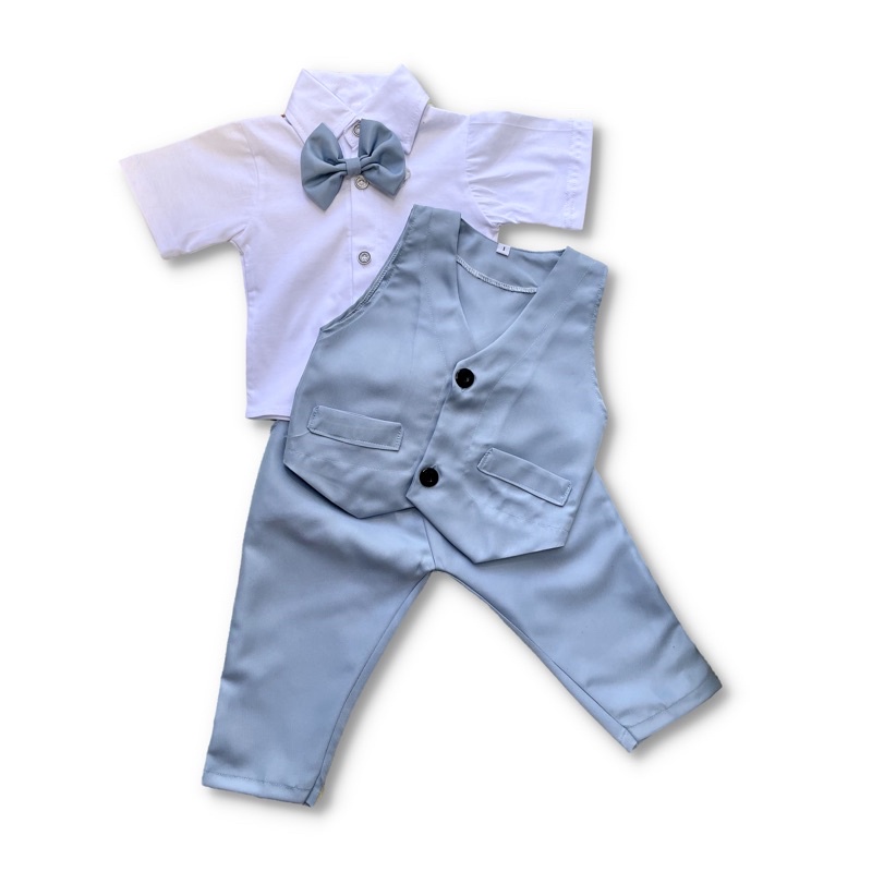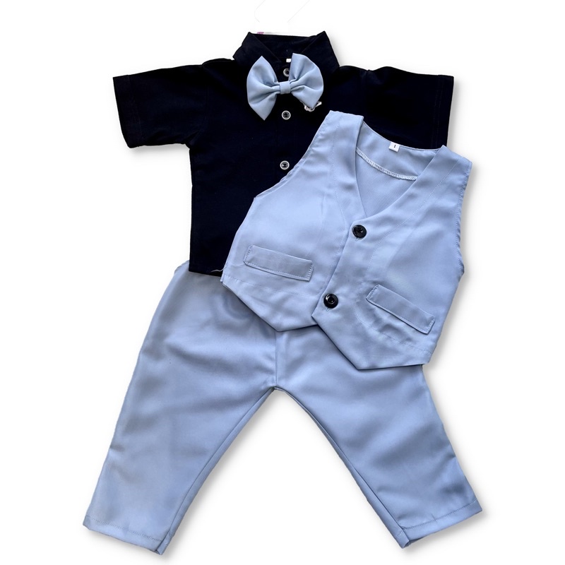 setelan anak vest blue biru 1 2 3 4 5 6 7 8 9 10 tahun bulan ulang pakaian pesta formal rompi tuxedo jas anak laki laki kondangan lebaran bayi baby clothes