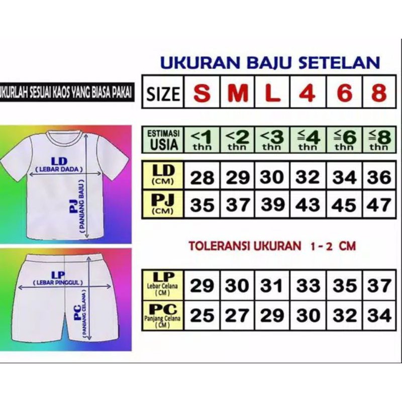 Produk ini memiliki 6 Variasi SIZE yaitu : S,M,L,4,6,8,
