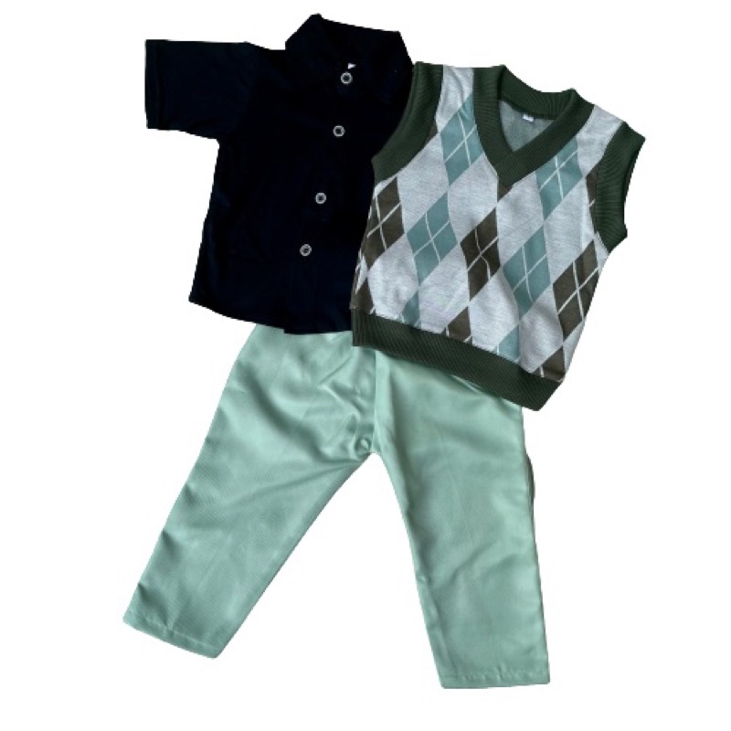 setelan vest knit argyle green pakaian anak vest tuxedo hijau mint formal kondangan 1 2 3 4 5 6 7 8 9 10 bulan ulang tahun party pesta bayi baby army wajik sage hijau