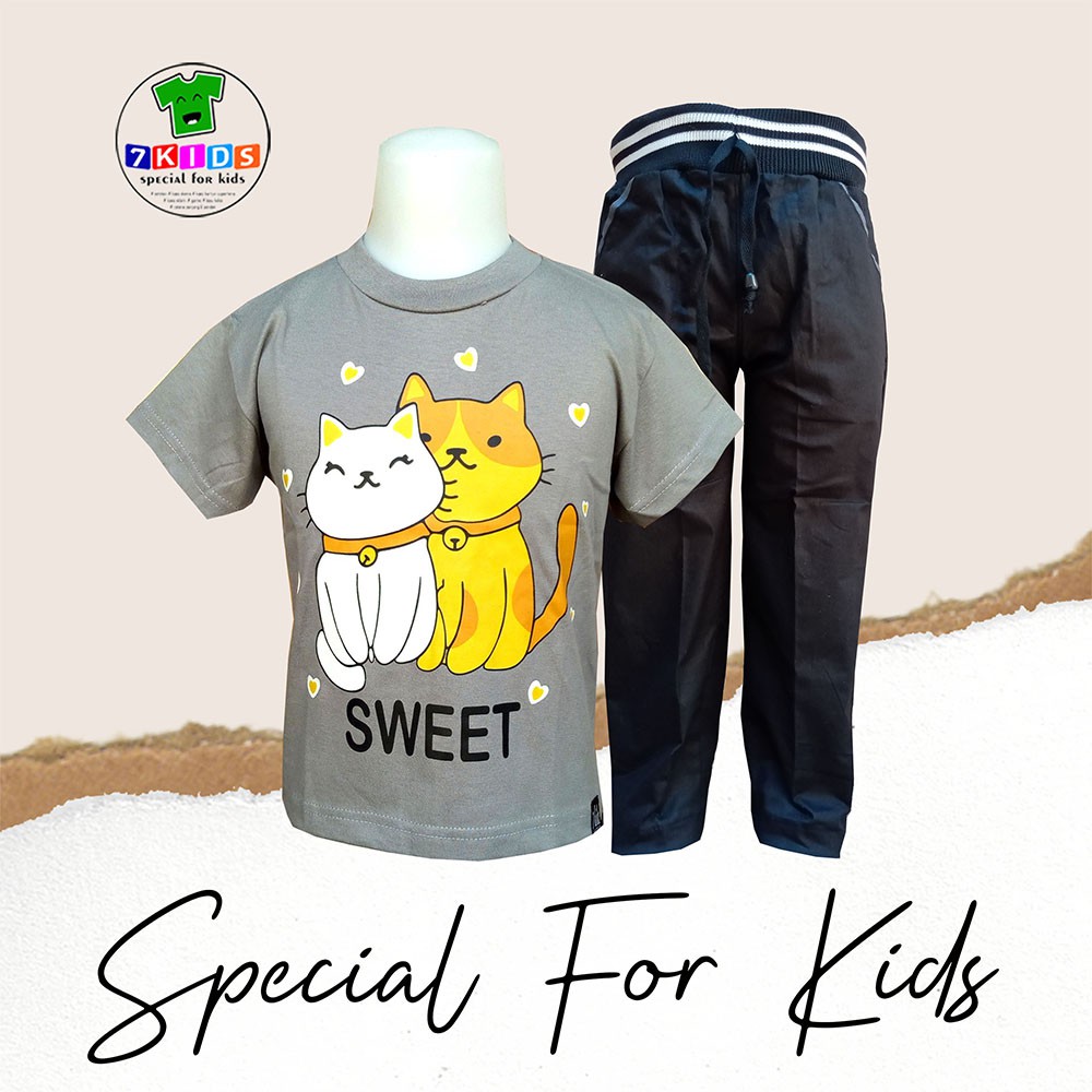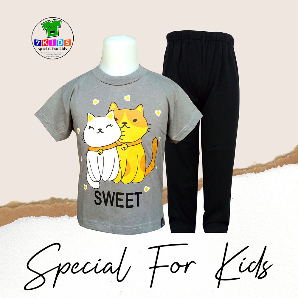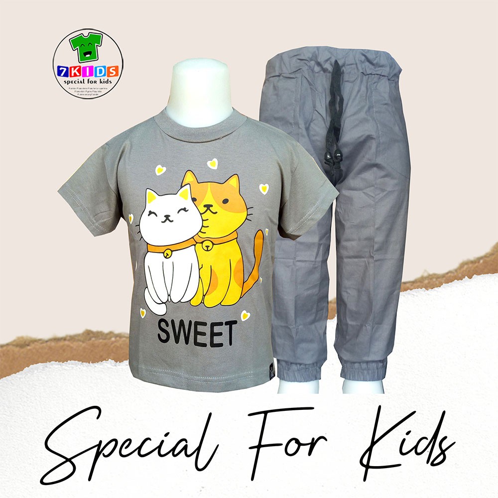 Harga Setelan Baju Anak Perempuan 3-12 tahun Realpict Gambar Kucing Lucu Baju Harian anak Murah 7kids Kaos Distro Abu Lengan Pendek Size Jumbo Terbaru