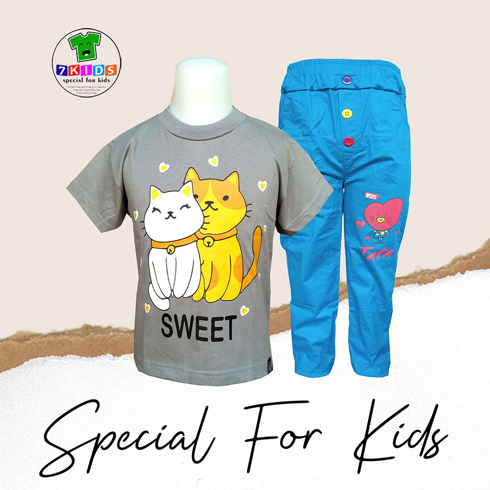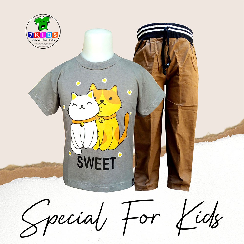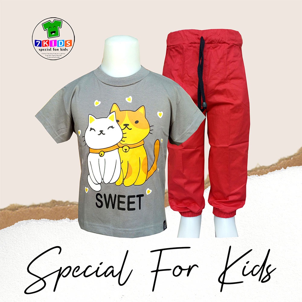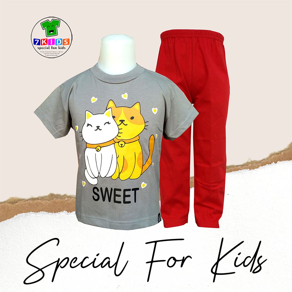 Harga Setelan Baju Anak Perempuan 3-12 tahun Realpict Gambar Kucing Lucu Baju Harian anak Murah 7kids Kaos Distro Abu Lengan Pendek Size Jumbo Terbaru