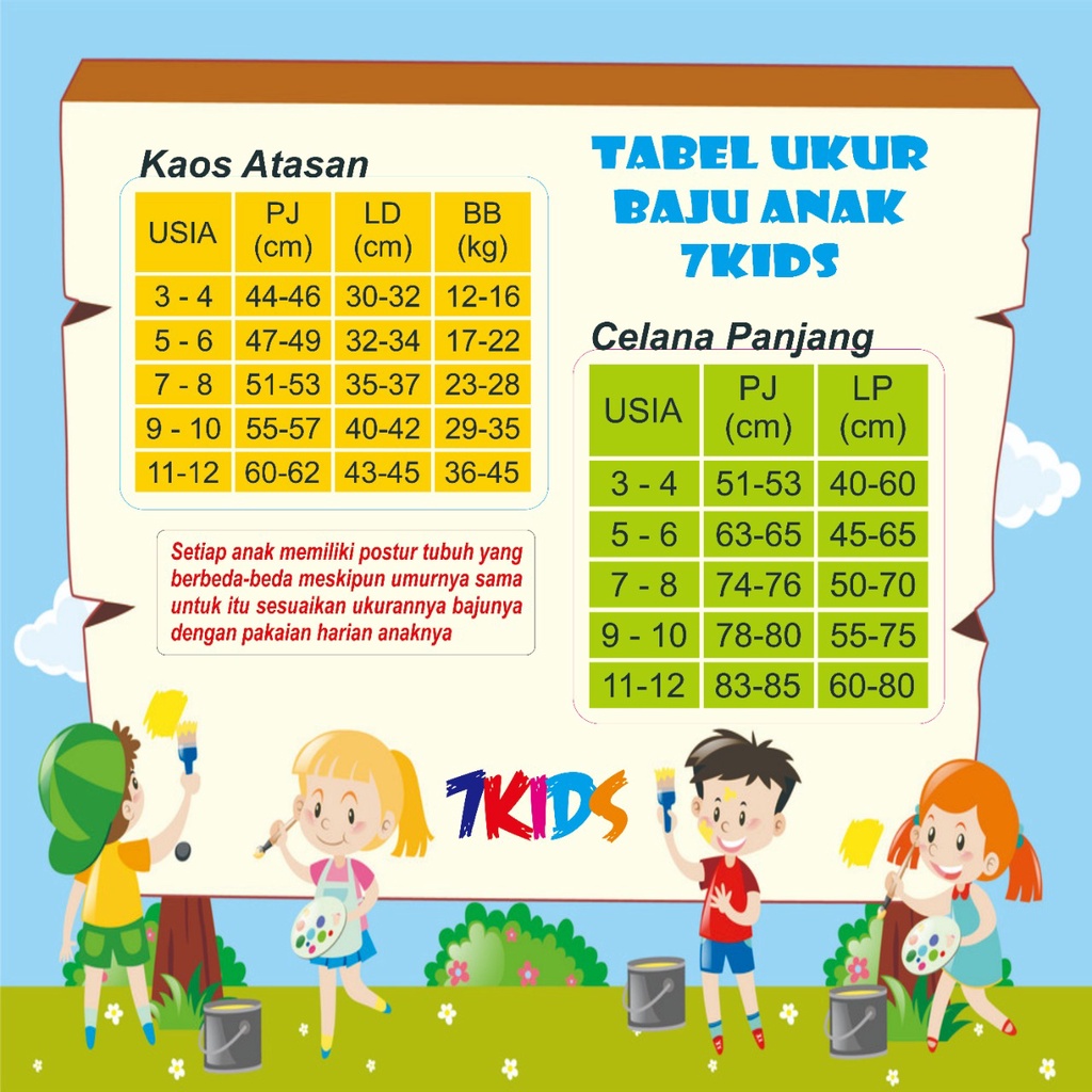 Produk ini memiliki 5 Variasi UKURAN yaitu : M:3-4th,Bb.11-17kg,L:5-6th,Bb.16-23kg,XL:7-8th,Bb.22-29kg,XXL:9-10th,Bb28-35kg,XXXL:11-12th,Bb36-42,
