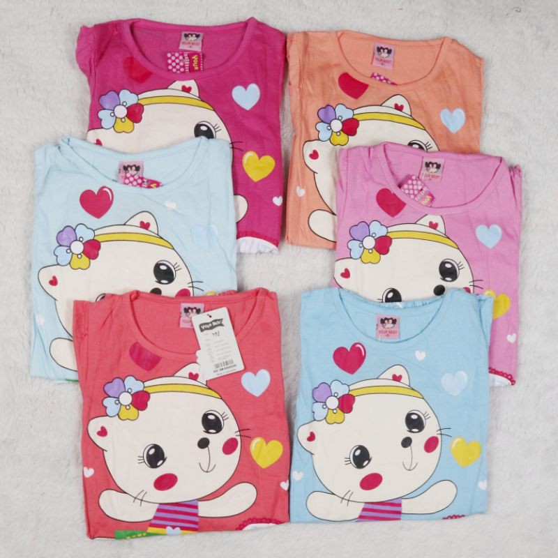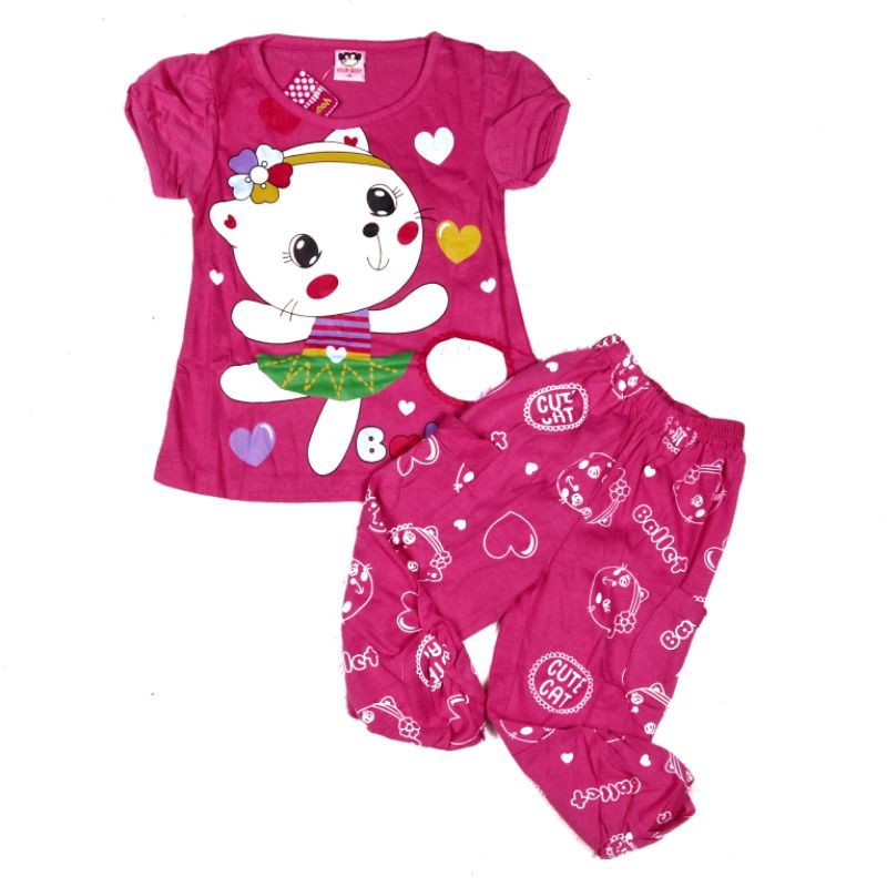 Setelan Kaos Anak Perempuan / Baju Anak Perempuan Lengan Pendek Motif Panda Fullprint 1-10 Tahun - AB