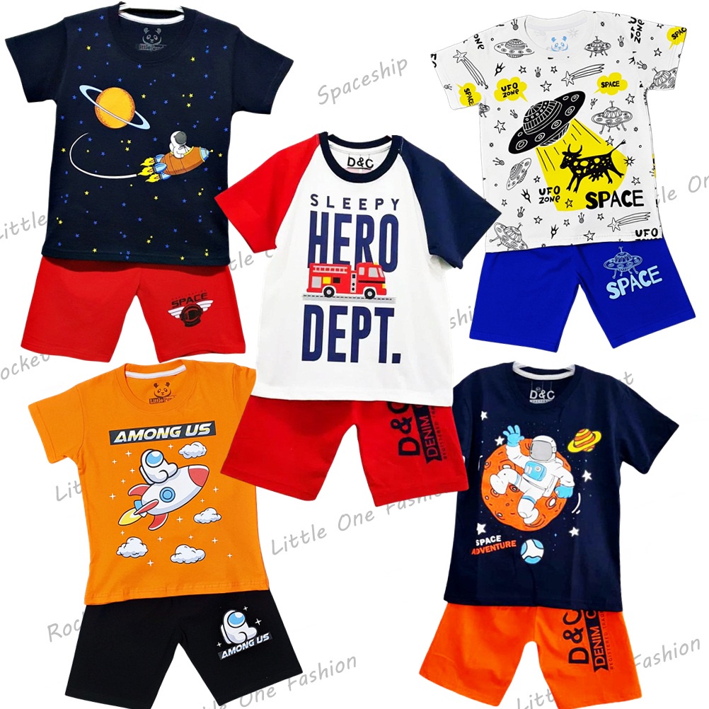 Setelan Baju Anak Cowok Umur 1 2 3 4 5 6 7 8 9 10 tahun motif Rocket Spaceship Ufo Astronot