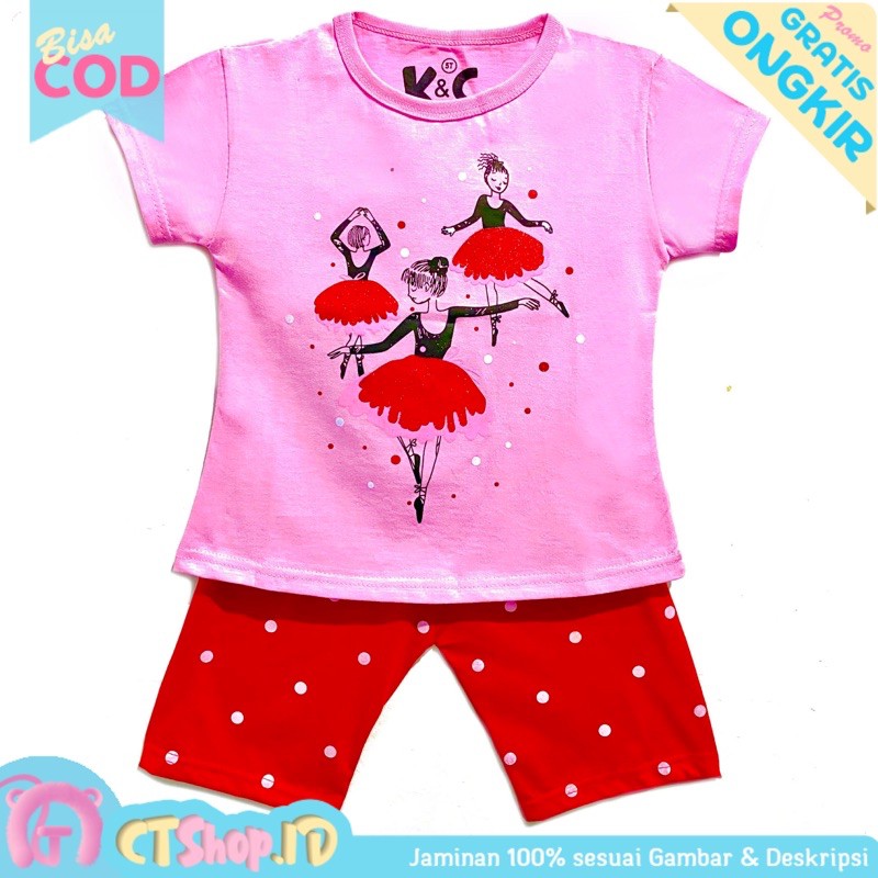 CTShopID SETELAN BAJU + CELANA Setelan Baju Anak Perempuan Motif Balerina Pink 1-10 Tahun