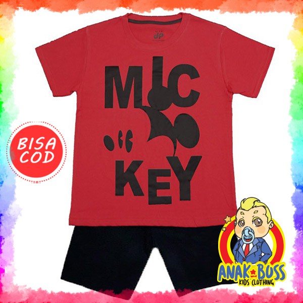 Setelan Kaos Anak Laki-Laki / Baju Anak Laki-Laki Lengan Pendek Motif Mickey Mouse Red 1-10 Tahun - AB