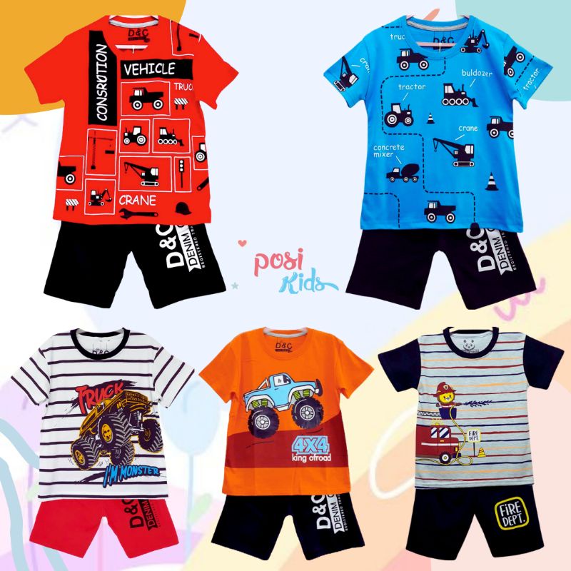 Setelan Anak Laki Laki / Baju Anak Laki Laki Motif Mobil Buldoser Traktor Umur 1-10 Tahun