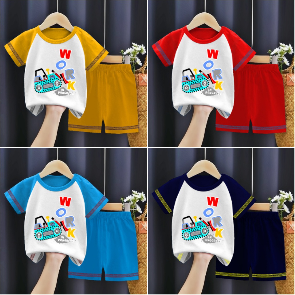 SETELAN BAJU ANAK COWO DAN CEWE MOTIF MOBIL TRAKTOR MOBIL BEKO POWER | SETELAN KAOS KIMONO ANAK LAKI-LAKI DAN PEREMPUAN GAMBAR WORK CARS SIZE 1-8 TAHUN S-XXL