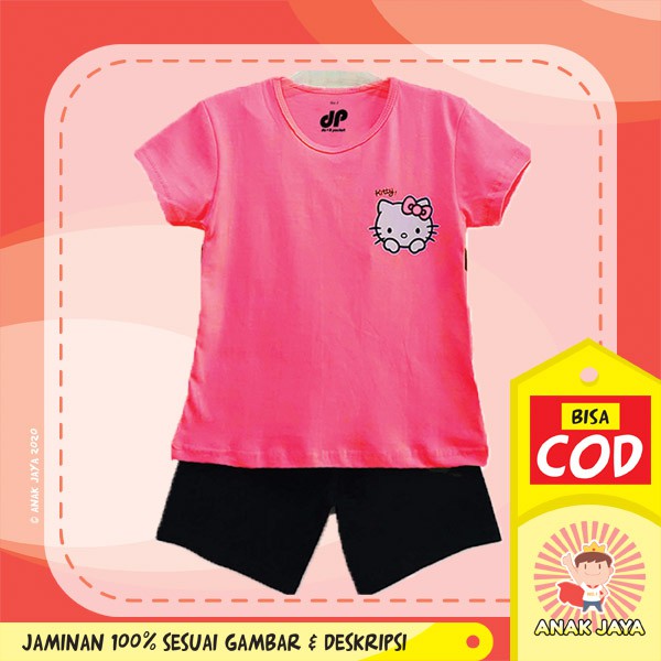 Setelan Kaos Anak Perempuan / Baju Anak Perempuan Lengan Pendek Motif Hello Kitty Backpack 1 - 10 Tahun Anak Jaya